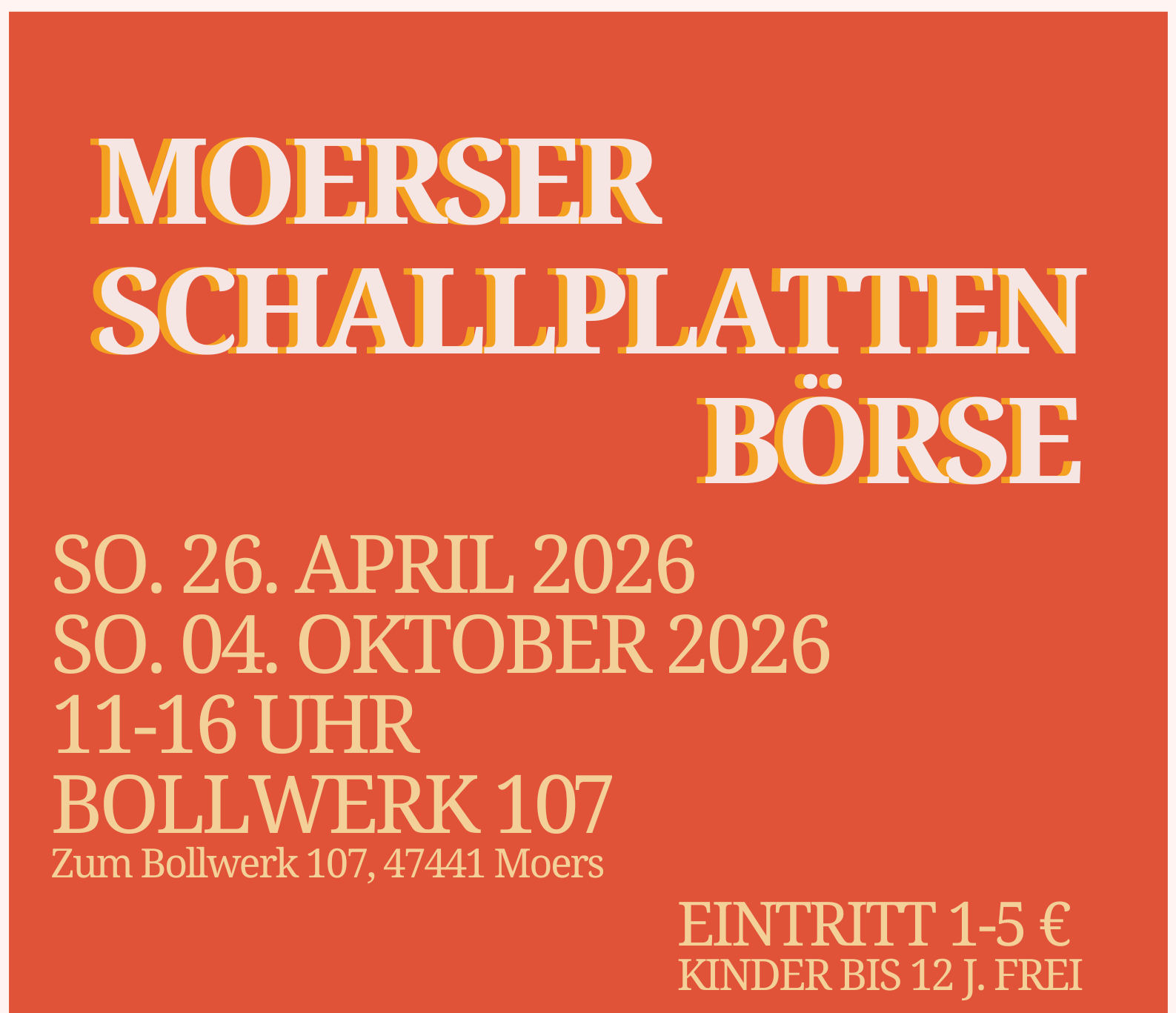 In Kooperation zwischen MUSIC & MORE und BOLLWERK 107 findet im April 2026 wieder eine Schallplattenbörse im BOLLWERK 107 statt. Von 11 bis 16 Uhr kann gestöbert, verhandelt und die Lieblingsplatte gekauft werden. Alle Sammelnde und Jäger und Jägerinnen - egal ob Einsteiger / Einsteigerinnen oder Spezialisten - sind herzlich eingeladen, in die bunte Welt der Schallplatte und anderer Tonträger einzutauchen und auf musikalische Entdeckungsreise zu gehen.Der Eintritt beträgt 1 - 5 Euro. Jeder gibt was er mag. Kinder bis zu 12 Jahren haben freien Eintritt.