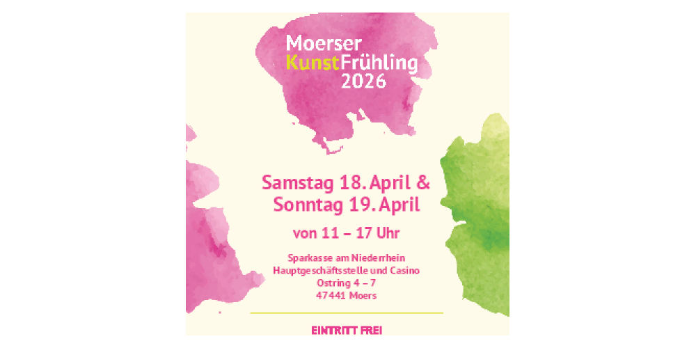 Weitere Informationen zum Moerser KunstFrühling. Downloads Flyer: Moerser KunstFrühling 2026 Text des Flyers Moerser KunstFrühling 2026