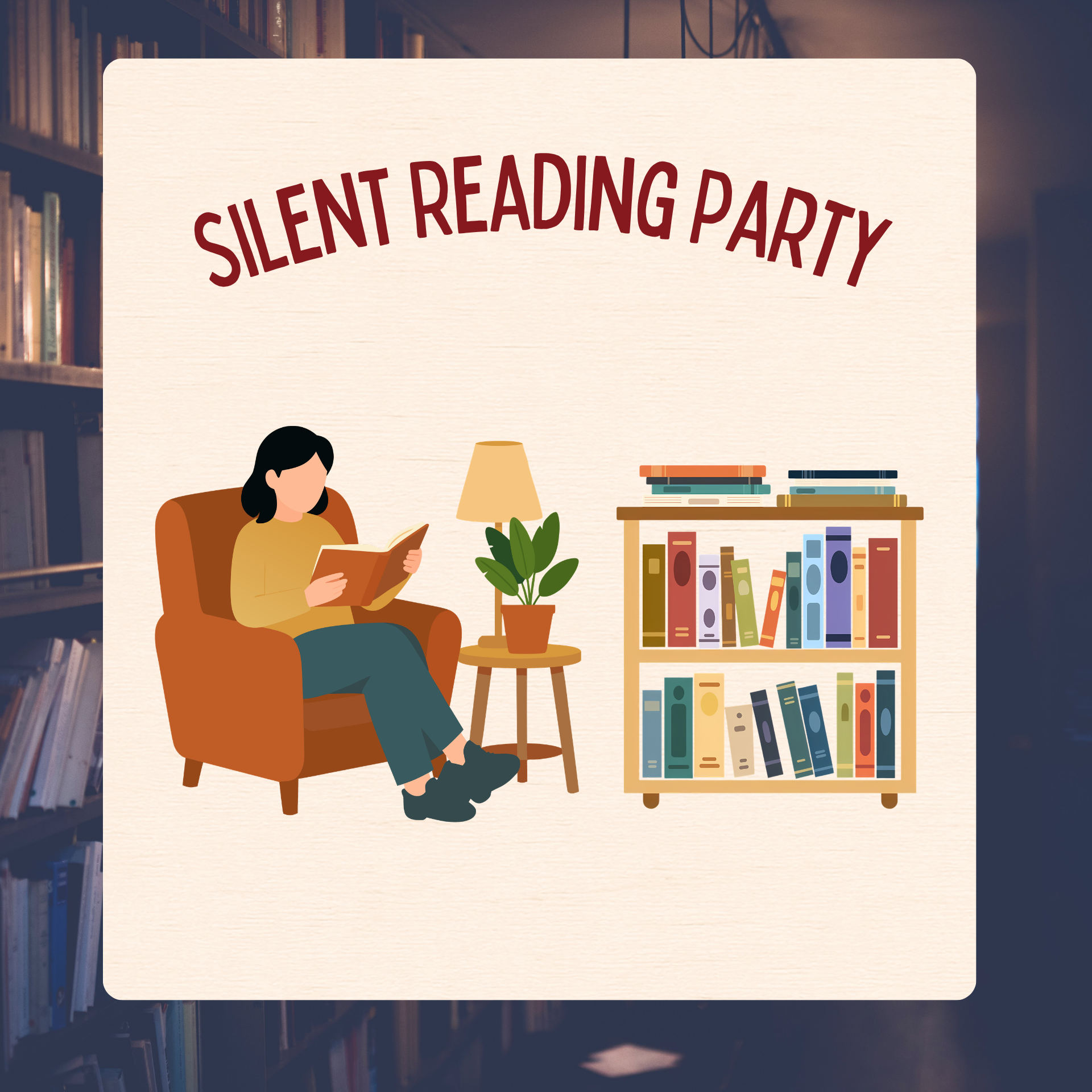 Wer sich einmal bewusst Zeit fürs Lesen nehmen möchte, ist bei unserer Silent Reading Party genau richtig: In entspannter Atmosphäre wird ohne Gespräche und ohne störende Handys gelesen, aber dennoch in Gesellschaft. Kleine Knabbereien gibt es auch!Für die Silent Reading Party stehen Bücher bereit, es kann aber auch gerne ein eigenes Buch mitgebracht werden.