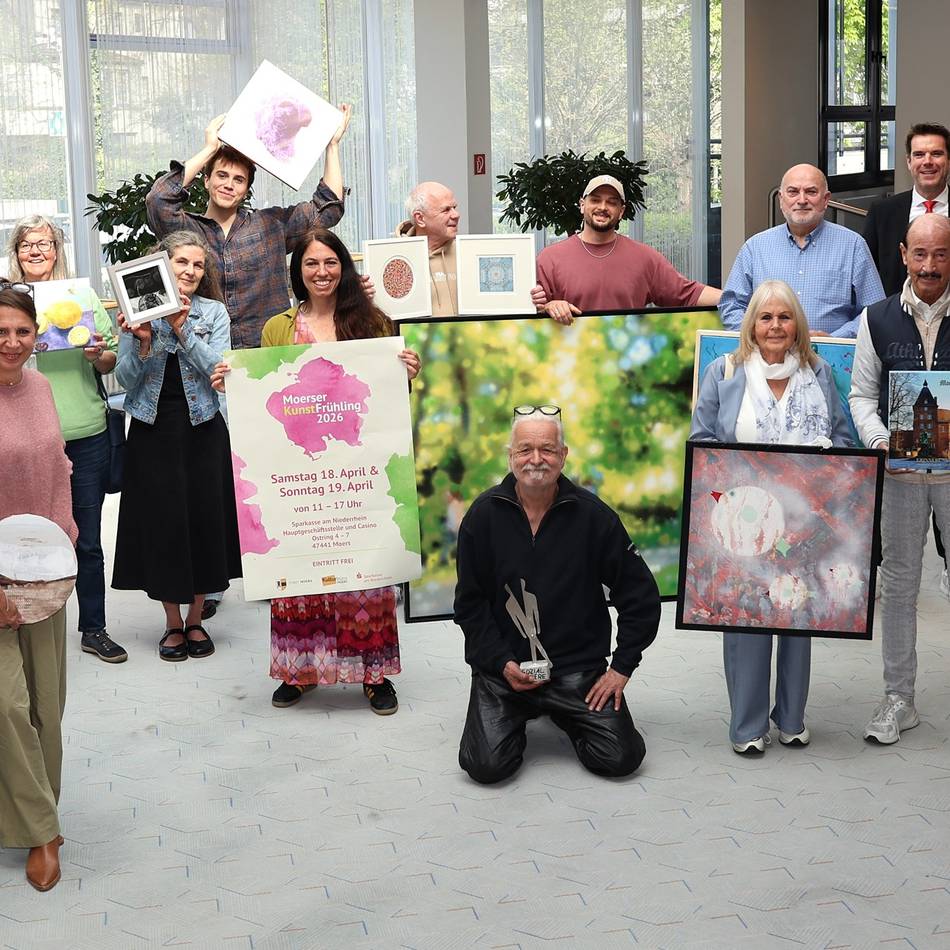 57 Künstlerinnen und Künstler beteiligen sich an der Veranstaltung, die in der Hauptgeschäftsstelle der Sparkasse am Niederrhein zu sehen sein wird. Das erwartet die Besucher.
