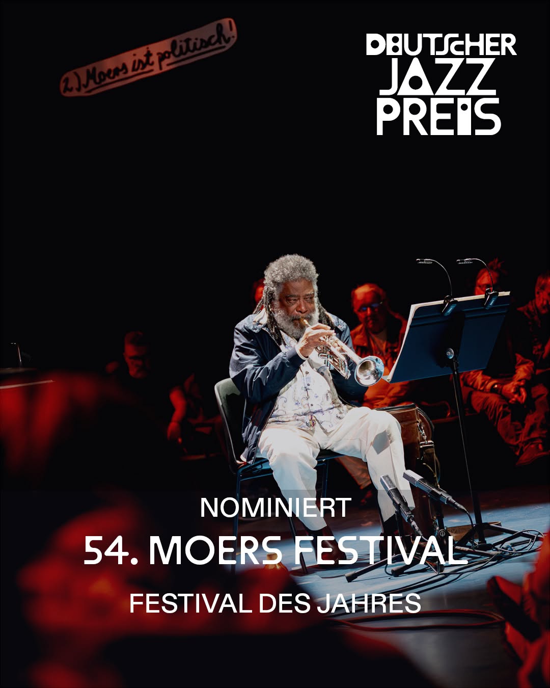 ✨ NOMINIERT! ✨ Wir sind voller Freude und Dankbarkeit: Das moers festival 2025 ist für den @deutscherjazzpreis nominiert! 🎷🏆 Dieses Foto fängt den Moment ein, für den wir brennen – und genau diese Energie unserer 54. Ausgabe steht nun in der Endauswahl als „Festival des Jahres“. Dass unser gemeinsamer Weg zwischen „Musik, Miteinander, Freysinn und: Klangfriede!“ diese besondere Anerkennung findet, ehrt uns zutiefst. Im letzten Jahr haben wir uns gemeinsam auf die Suche nach verschiedenen Arten von Stille begeben und Räume für das Unerwartete geschaffen. Diese Nominierung gebührt all den mutigen Künstler*innen, unserem Team und natürlich euch – unserem Publikum, das sich mit uns auf dieses Experiment eingelassen hat. ❤️ Drückt uns die Daumen für die Preisverleihung! Wir fühlen uns bereits jetzt geehrt, Teil dieser herausragenden Auswahl zu sein. ✨ #DeutscherJazzpreis #Jazzpreis26 #moersfestival Foto: Dennis Hoeren @d_n__s